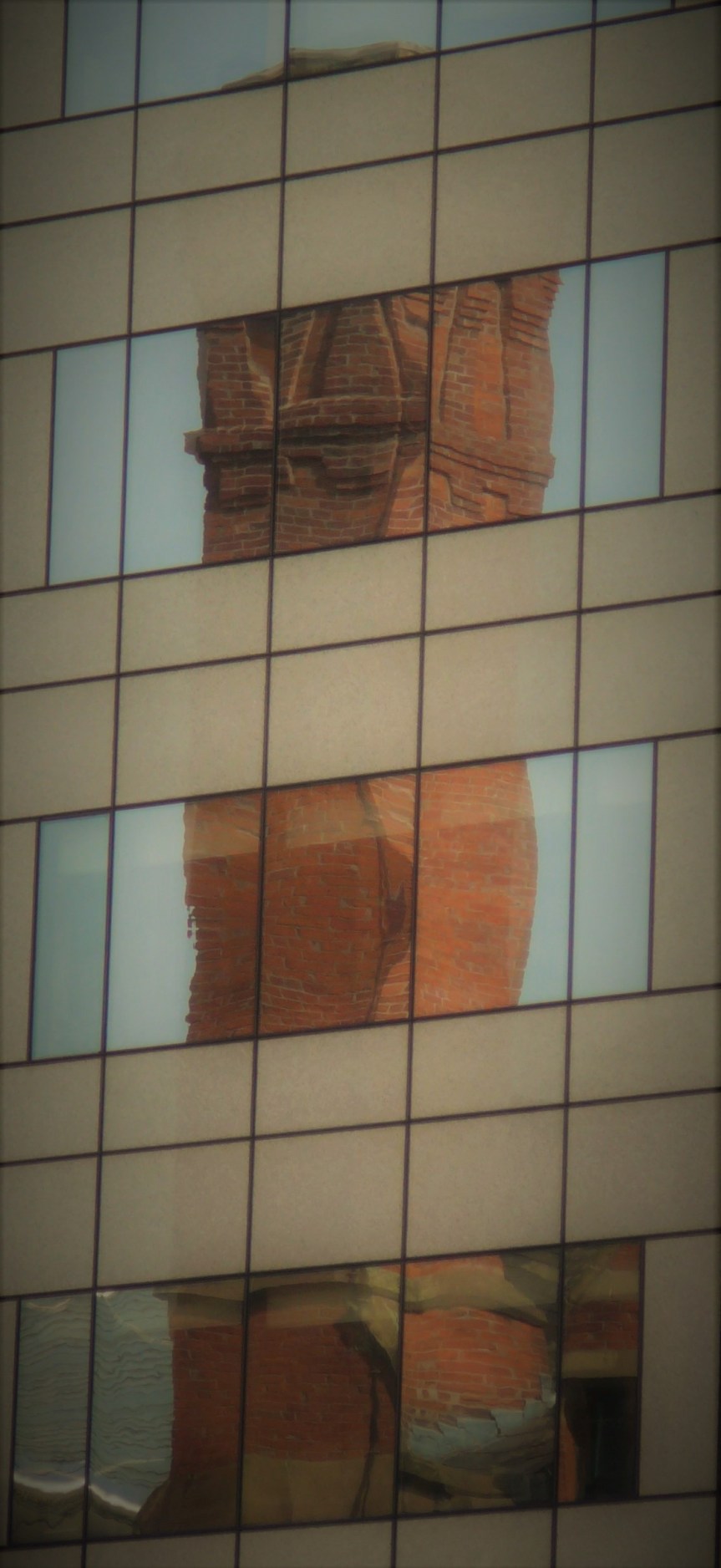 Las viejas y erectas chimeneas de la próspera e industrial Manchester se comban, cimbrean y deforman bajo el efecto de la luz sobre planos especulares.